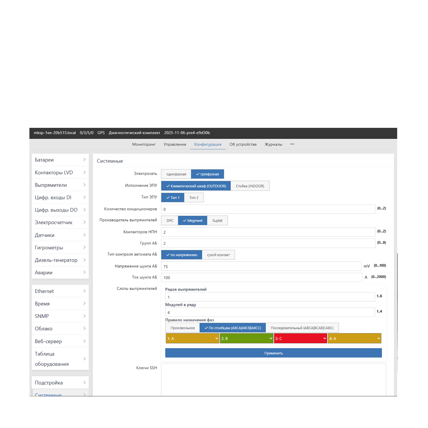 ВПО контроллера ЭПУ «Энергомера» MKSP-1EE предназначено для управления процессами электропитания в составе электропитающих установок «Энергомера» серии ESPT-48-E. Обеспечивает управление выпрямительными модулями ЭПУ, с целью поддержания стабильного электропитания телекоммуникационного оборудования, корректного заряда и разряда свинцово-кислотных и литиевых батарей. Обеспечивает работоспособность устройств управления нагрузкой и мониторинг параметров электропитания.